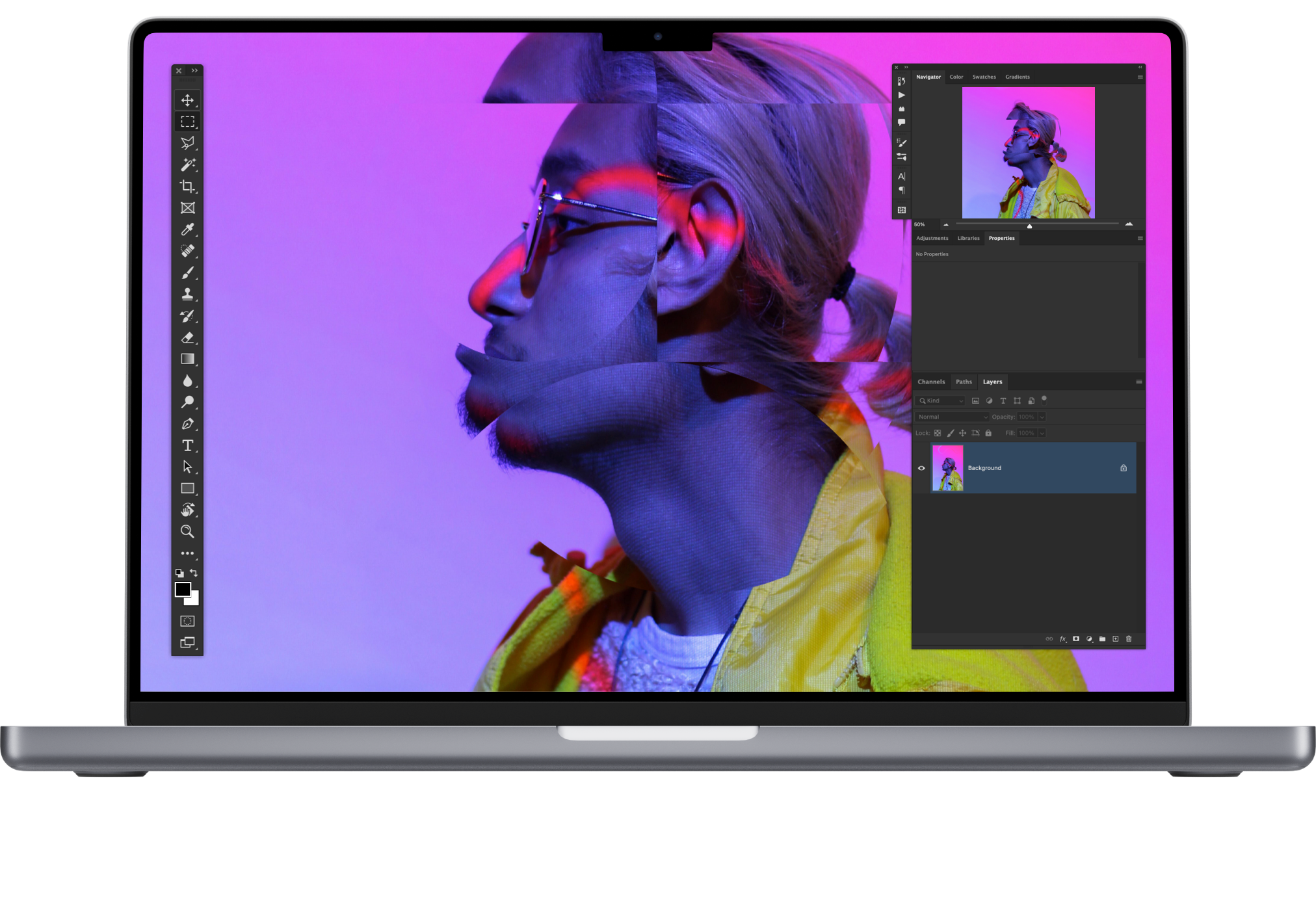 Glitch uses a non-destructive Photoshop workflow, using Photoshop smart layers. None of your original assets or design layers are ever affected, and all effects can be easily reverted to achieve the creative control you desire.